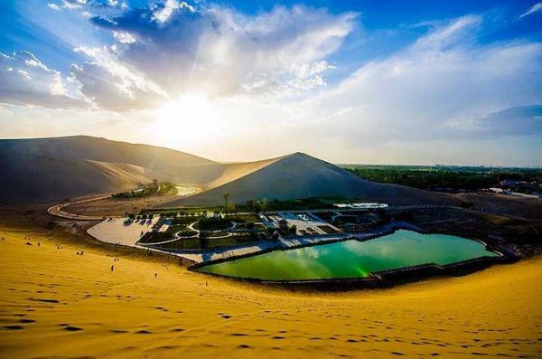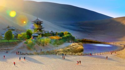 12:00用完午餐后(午餐自理,用餐时间大约1小时)浏览月牙泉、鸣沙山