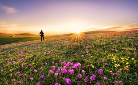 喀拉峻草原位于新疆伊犁河谷的特克斯县境内,是西天山向伊犁河谷的过渡地带。属典型的高山五花草甸天然大草原,海拔在1305-3957米之间,东西长89公里、南北宽32公里,总面积达2848平方公里。这里降水丰富、气候凉爽、土质肥厚,十分适宜牧草的生长,生长有上百种优质牧草。西喀拉峻景区内主要有望玉台、旱